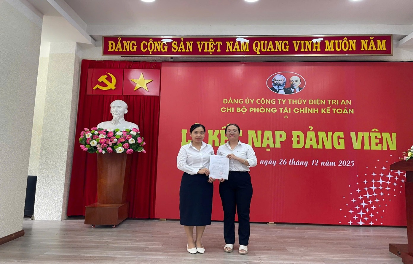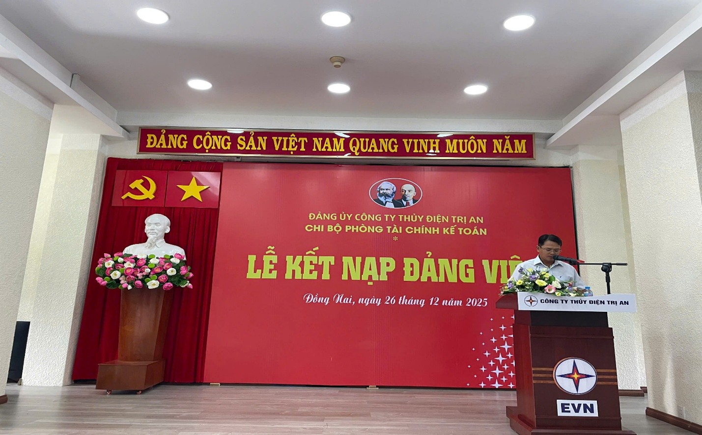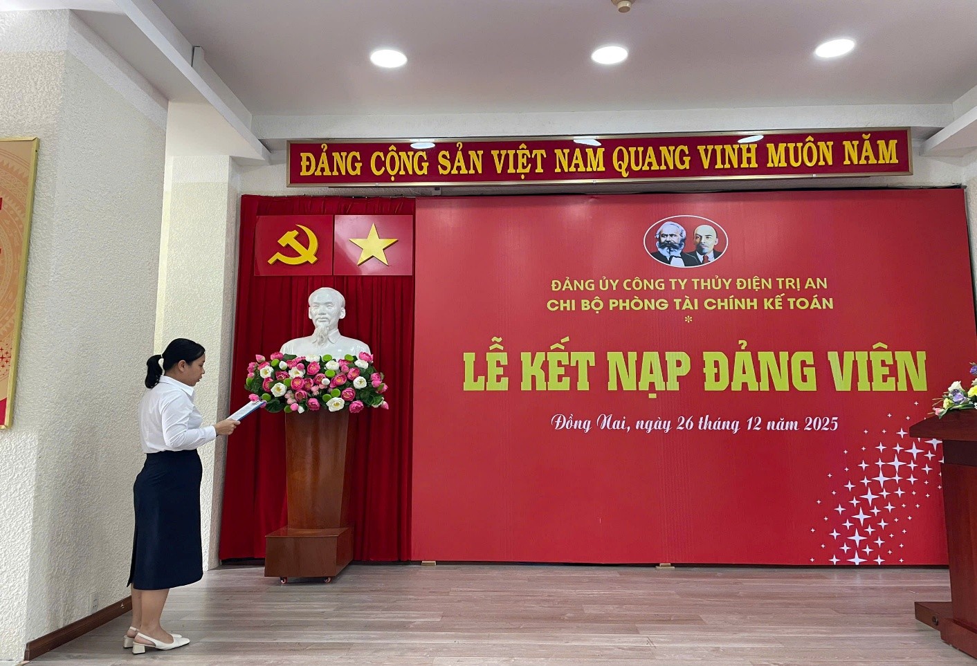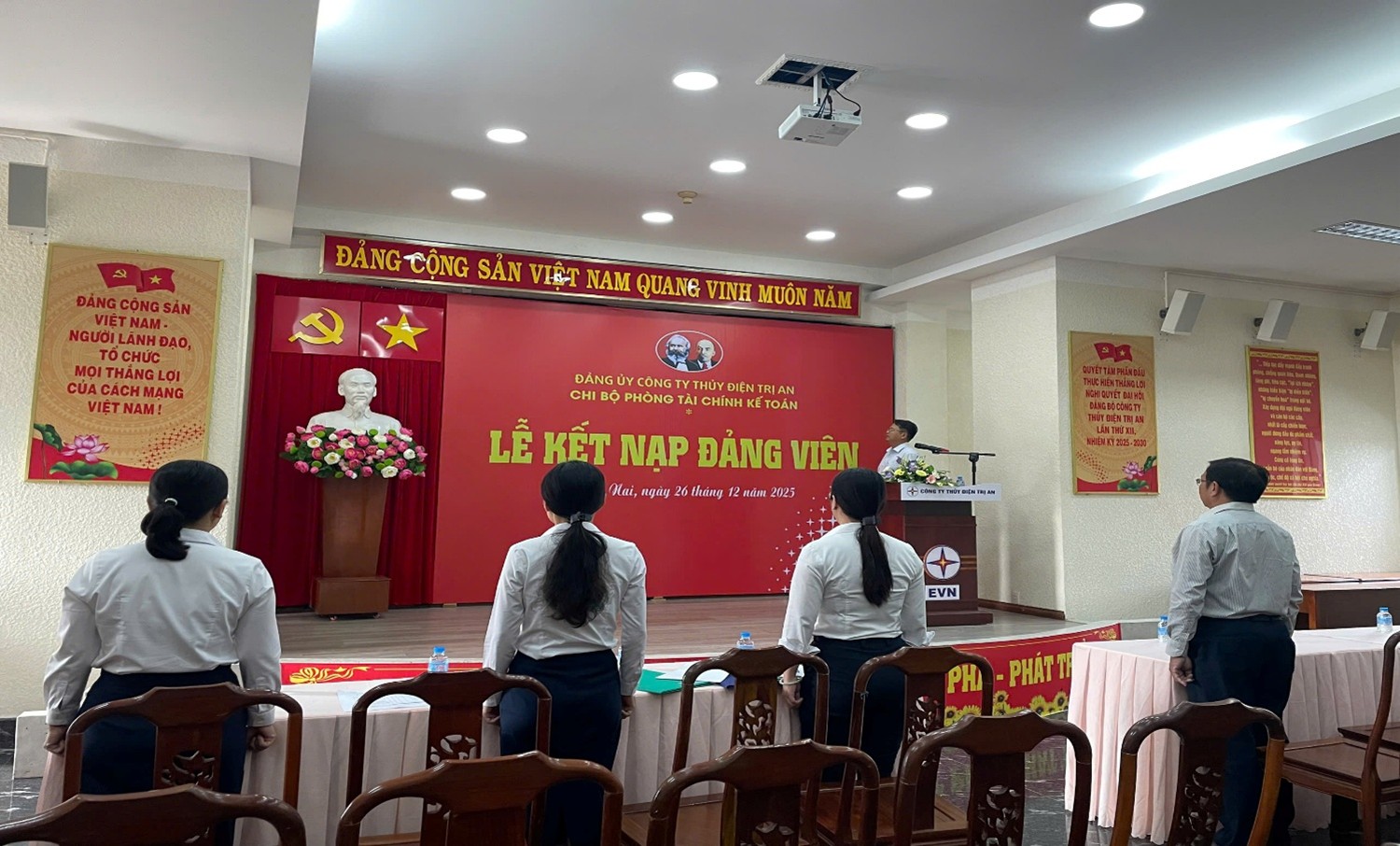 Chiều ngày 26/12/2025, tại Hội trường Công ty Thủy điện Trị An, Chi bộ Phòng Tài chính Kế toán đã long trọng tổ chức kết nạp Đảng viên cho các quần chúng ưu tú.